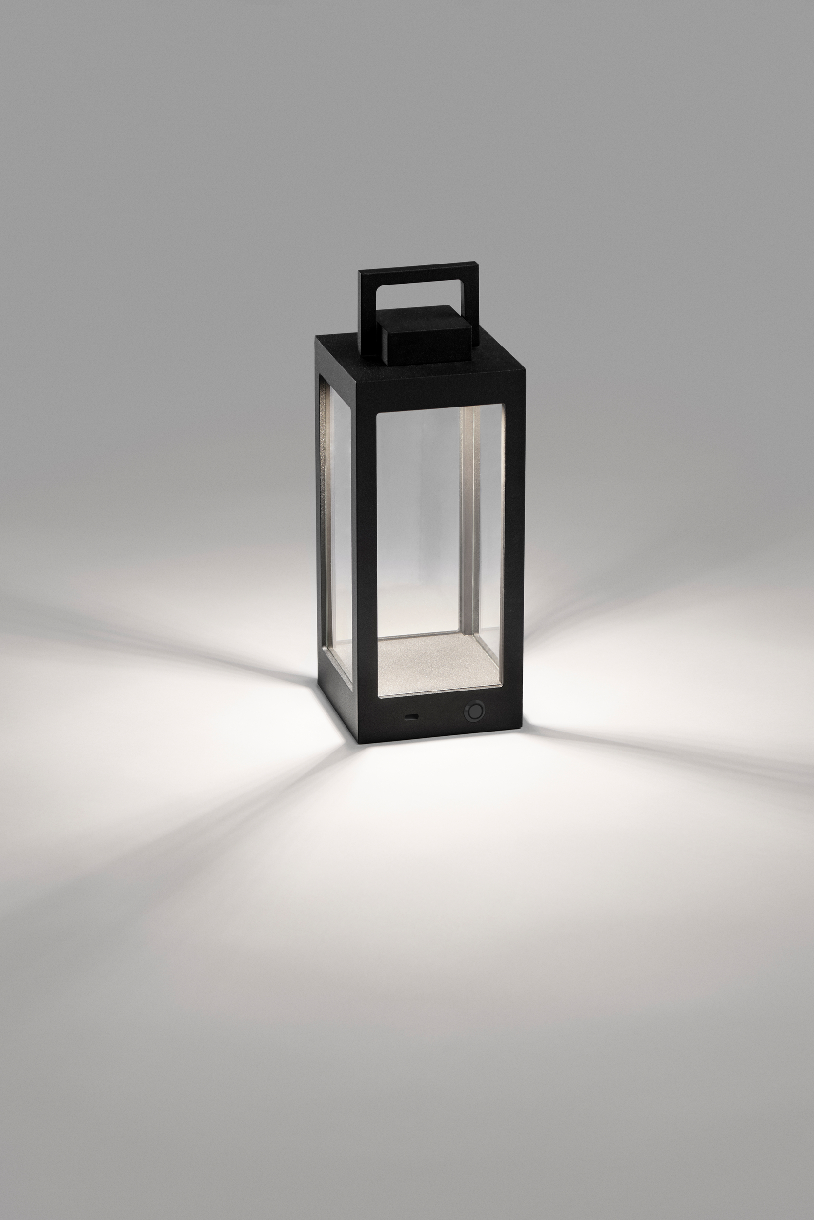 Lantern Table is delivered including an inbuilt rechargeable Lithium ion battery as well as a charger. Optimal running time for Lantern Table from full charge is approximately 4-12 hours. As the product has three available light levels, the running time varies accordingly. Four hours is the running time at maximum light level.