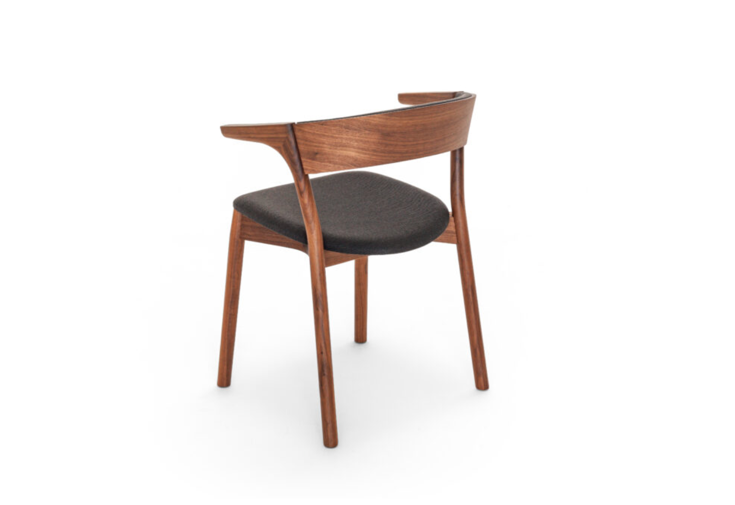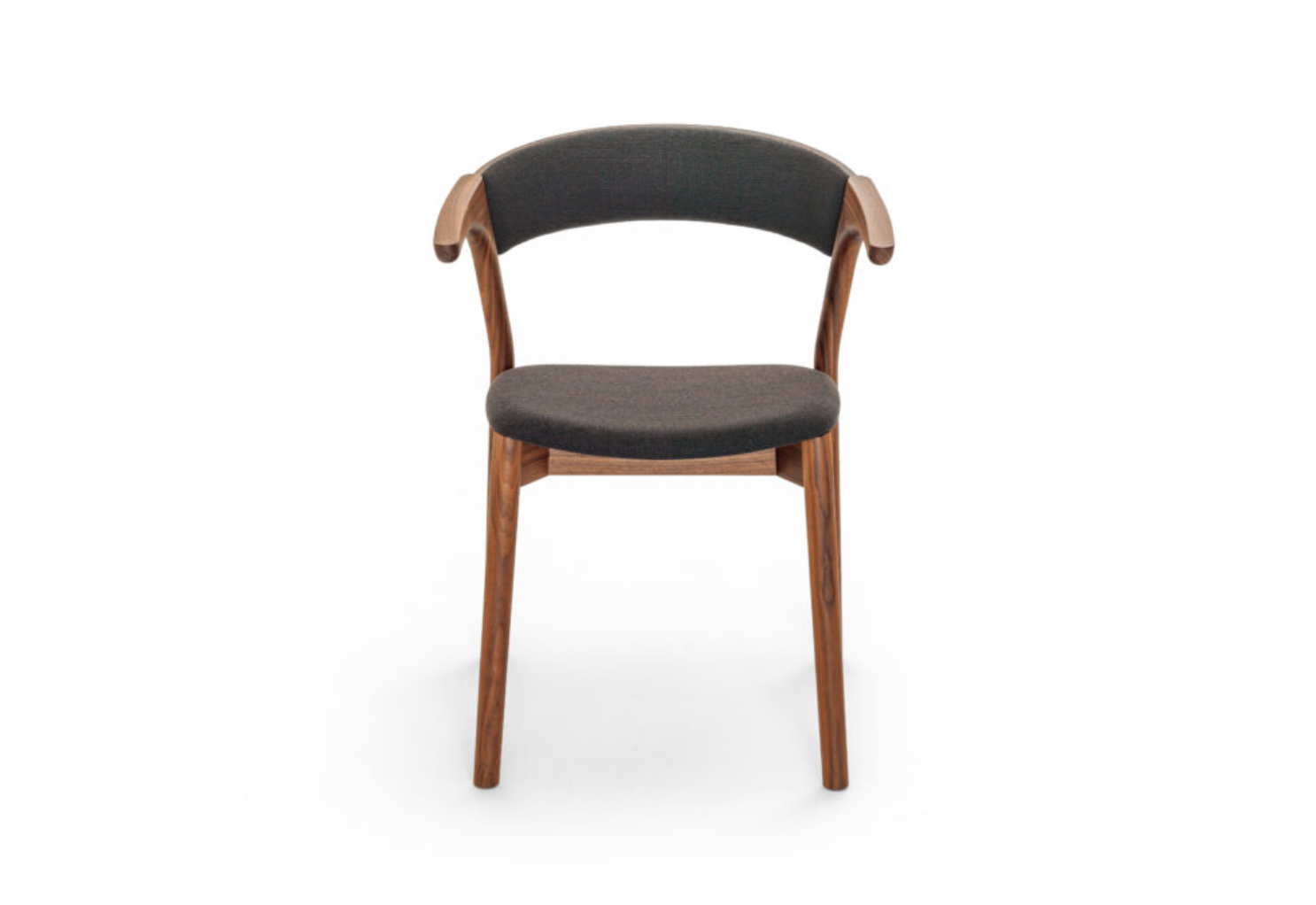 Clarity and calmness define the look. A functional interplay of hard and soft materials: leather and selected fabrics embrace, while wood provides stability. The front, back and side views show subtle differences in meticulous details, depending on how the materials come together. The perfectly balanced back and the pleasantly soft seat provide a high level of comfort.