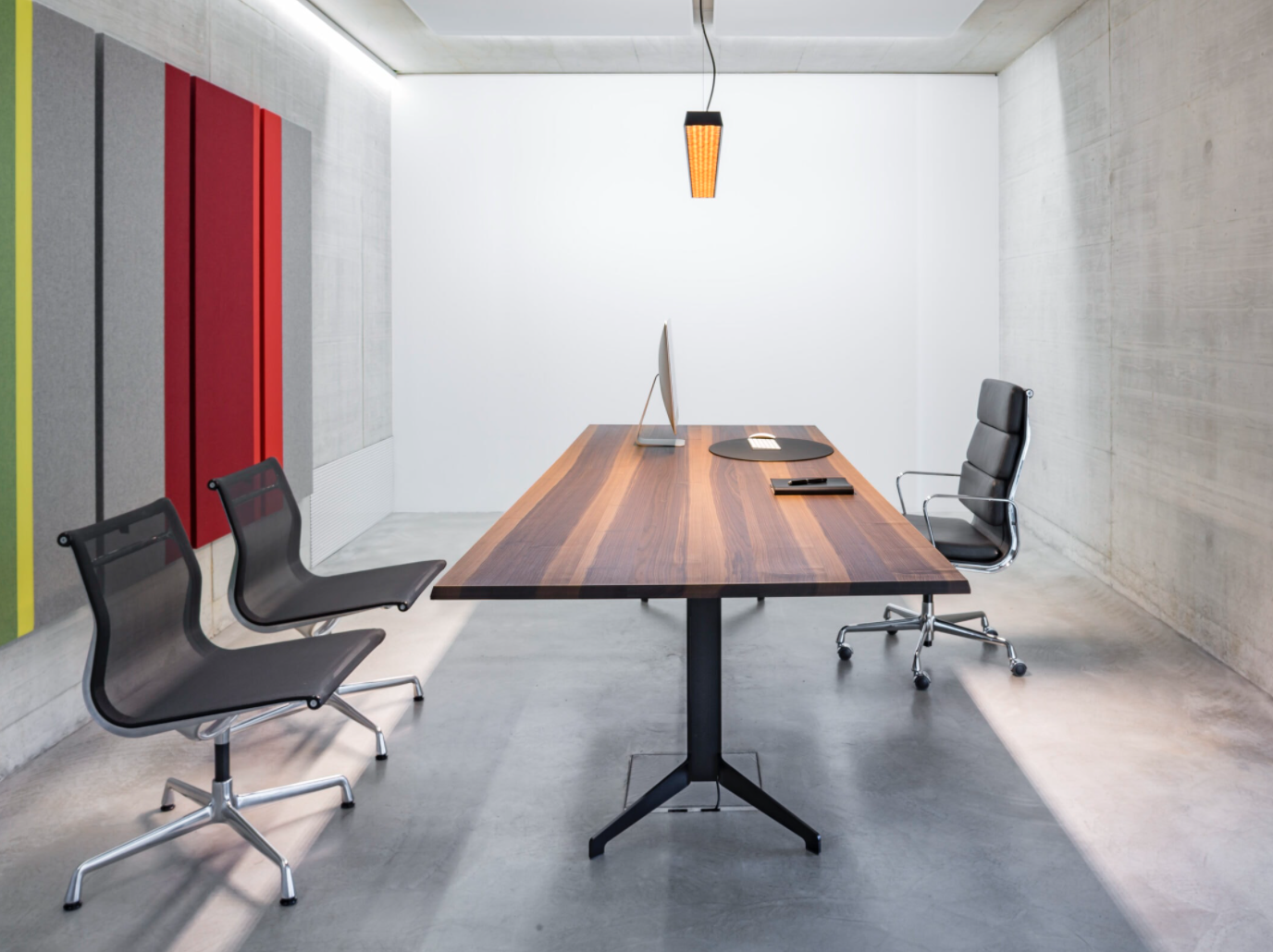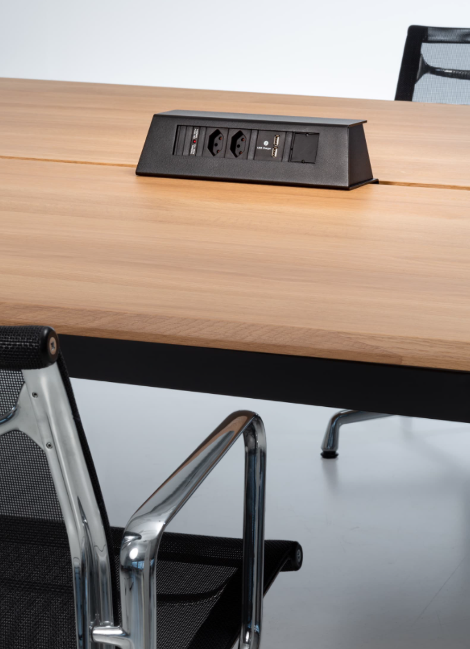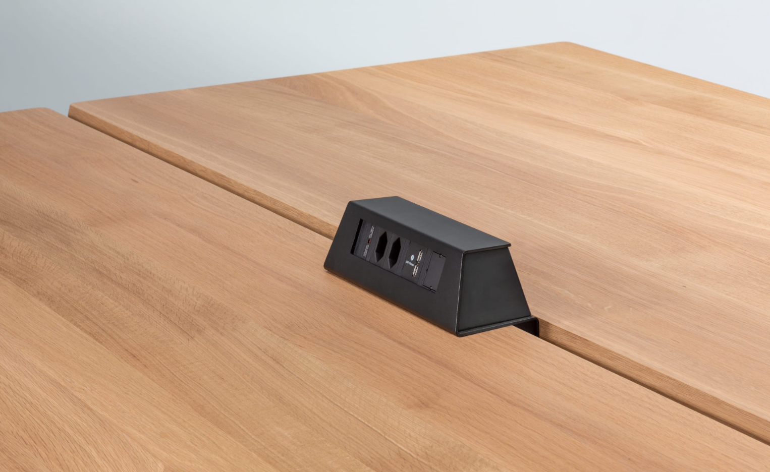 The LYNX table range impresses with a wide variety of functions, numerous table top formats and a cultivated presence. Precision-designed steel Y-shaped legs form the ethereal subframe for LYNX’s technical elegance. The solid wood table top – natural and radiating a sense of well-being. As a stand-alone desk with a carefully integrated cable management system, the table unites excellent functionality with aesthetics.