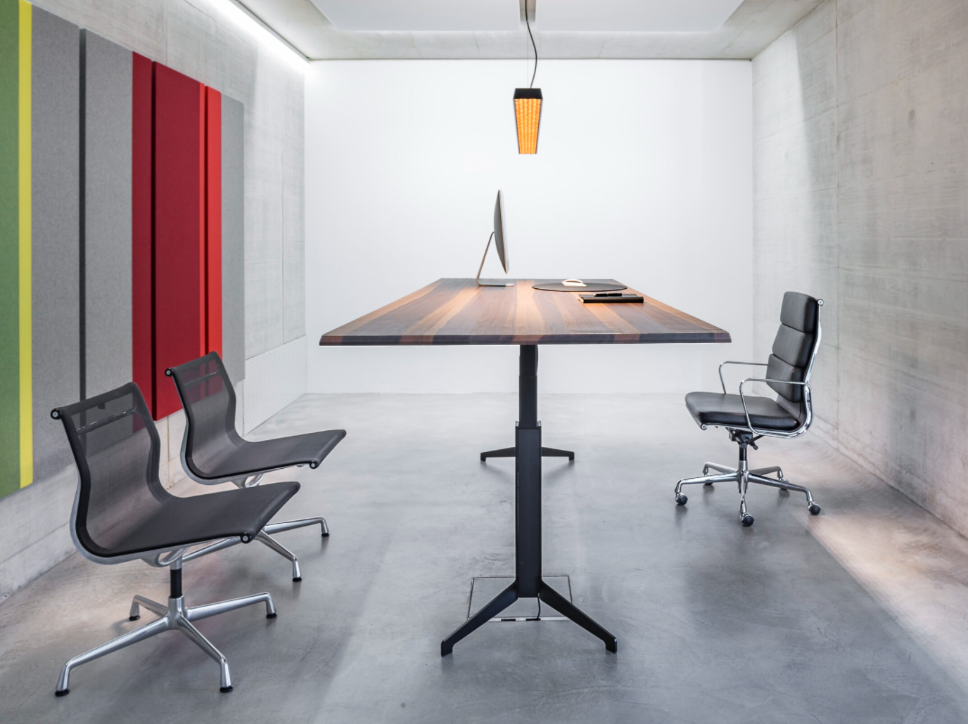 The opportunity to work and discuss flexibly, while sitting or standing, has become an important factor in the business world. LYNX Move brings height adjustment to the executive’s office, to the conference room and to the management co-working space.