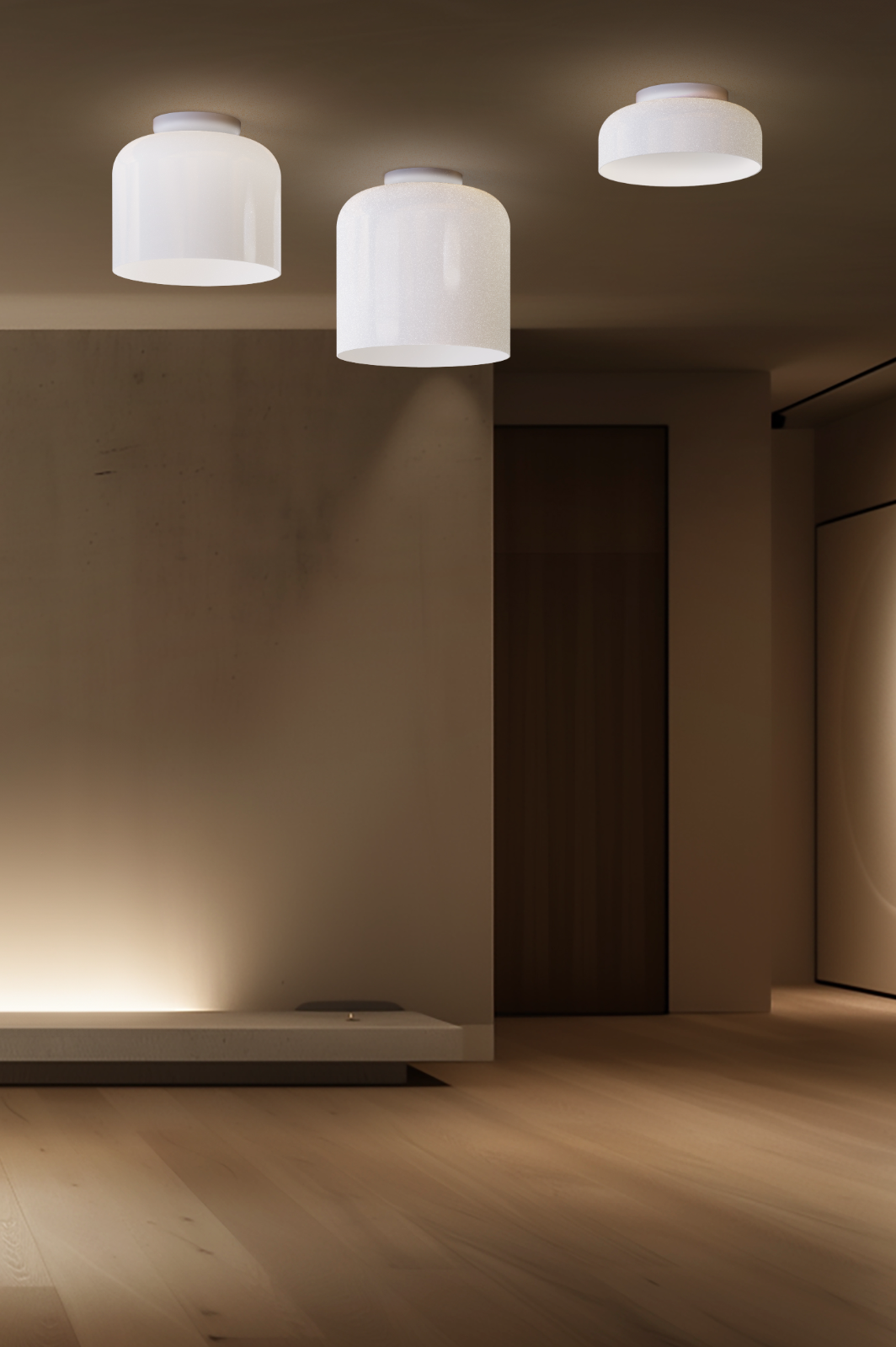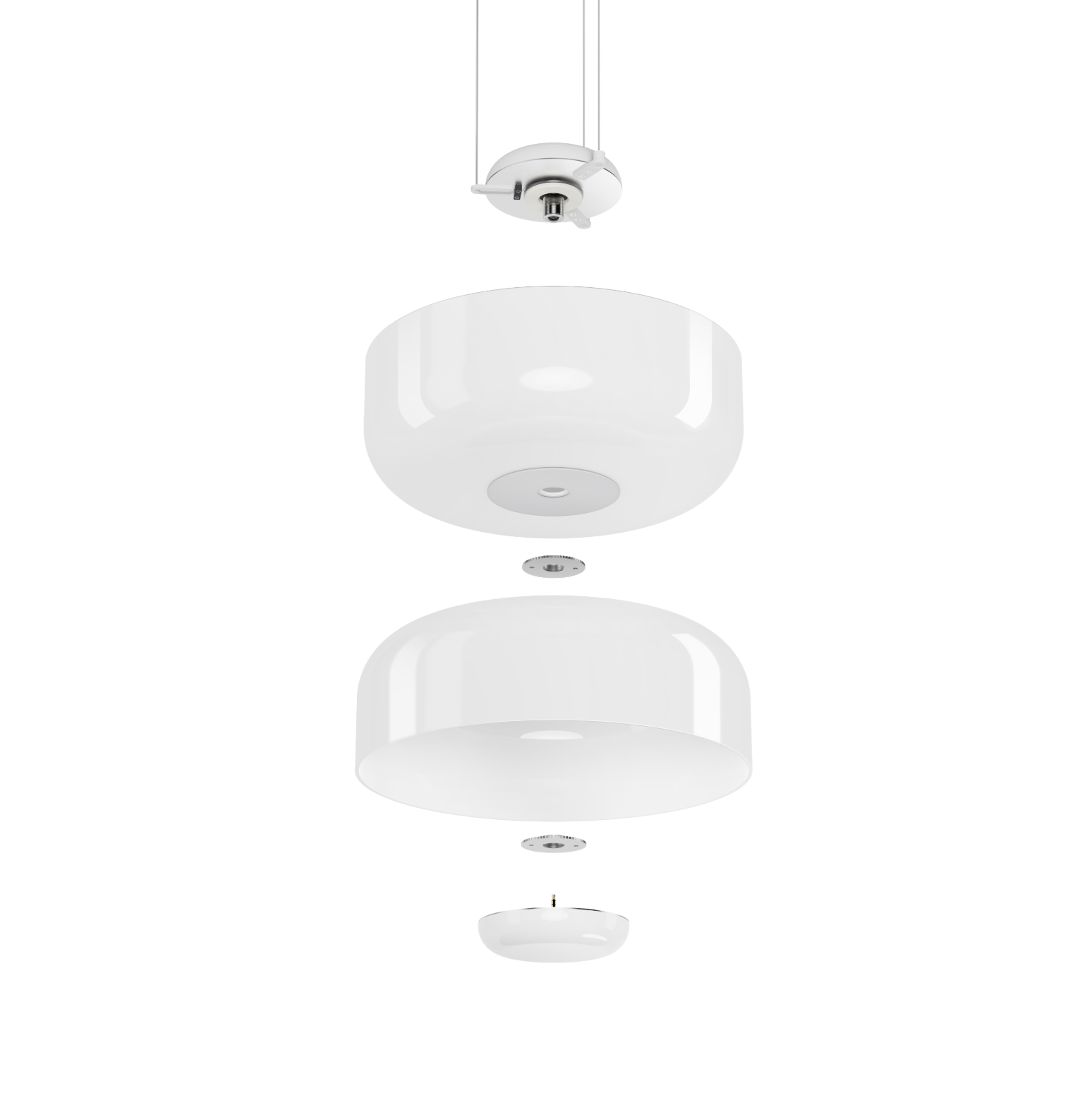 Totem is a classic and highly versatile pendant LED lighting system comprised of exquisitely blown opal glass shades designed around a modular platform. Totem’s soft, pure white geometric forms provide a charming interplay of unique combinations to provide warmth and elegance to any space. Users can select from 4 shade sizes in descending order (A,B,C,D) which can be employed in both single and double shade combinations to create up to 20 unique models to satisfy both direct and indirect illumination needs. Totem is available in 3 fully dimmable LED Light engine combinations: Up/Down Light, Down Light, and Flush Down Light with each shade housing its own light engine. This flexibility allows for creating stunning groupings that emanate from ceiling down to pendant height across multiple sizes and shapes and best suited over dining areas, entry foyers and hallway ceiling scenarios. Inspiration behind the design was to celebrate random combinations and encouraging specifiers to create personalized lighting solutions unique to their own spaces